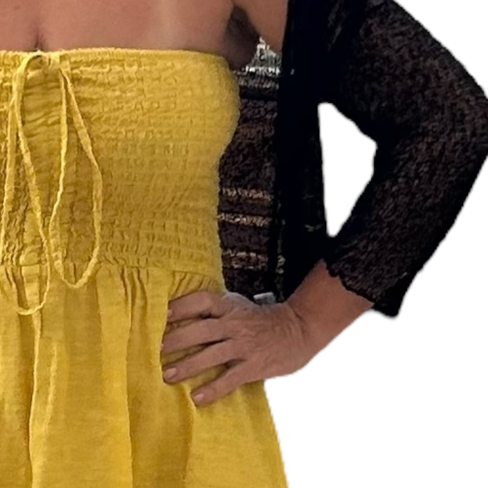 Discover our versatile Angela maxi-length linen dress, featuring a playful bottom frill and a smocking tube top.