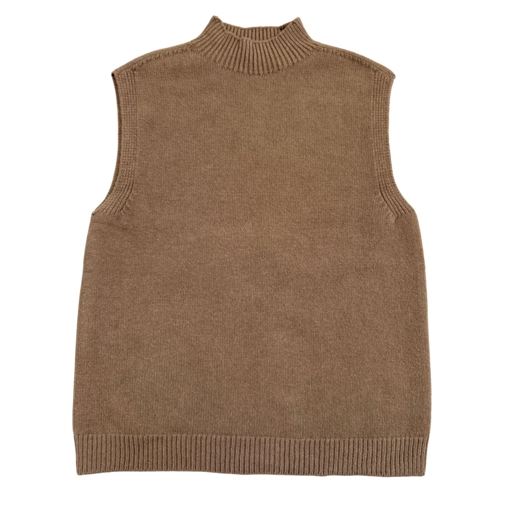 Embrace effortless style with our taupe sleeveless high-neck sweater, designed for ultimate comfort with its seamless, super-soft knit. Perfect for layering or wearing alone. Pairs beautifully with the matching cardigan for a complete, chic look.